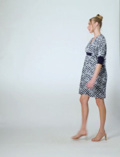 Relaxed yet refined, the Mikhala Dress in Alhambra is a modern kaftan silhouette featuring a contrast elasticated bodice, deep cuffed dolman sleeves and soft gathers under the bust. Crafted in our 1960s London-designed navy and ivory print with Spanish overtones.