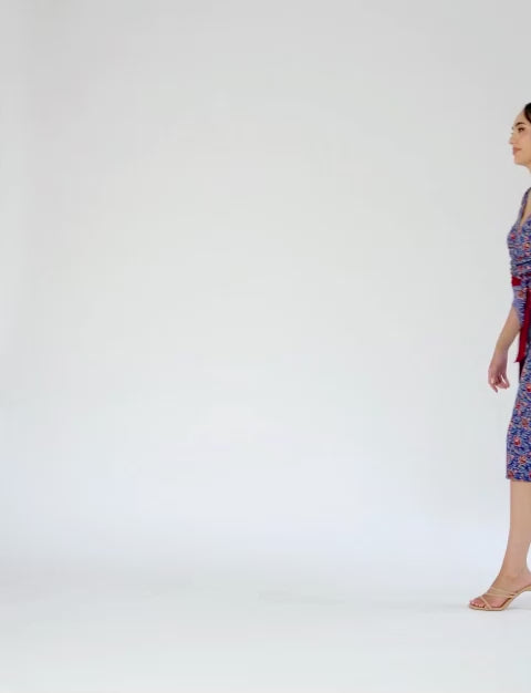 Crafted in soft, comfortable jersey, Elowen gently defines the waist before falling into a fluid, softly flared skirt. A rounded V-neckline with delicate ruching through the centre front creates a feminine shape, while the adjustable tie allows you to wear her cinched or relaxed. Finished with elegant ¾ sleeves and a striking shiraz contrast tie, Elowen is an easy day-to-dinner favourite.